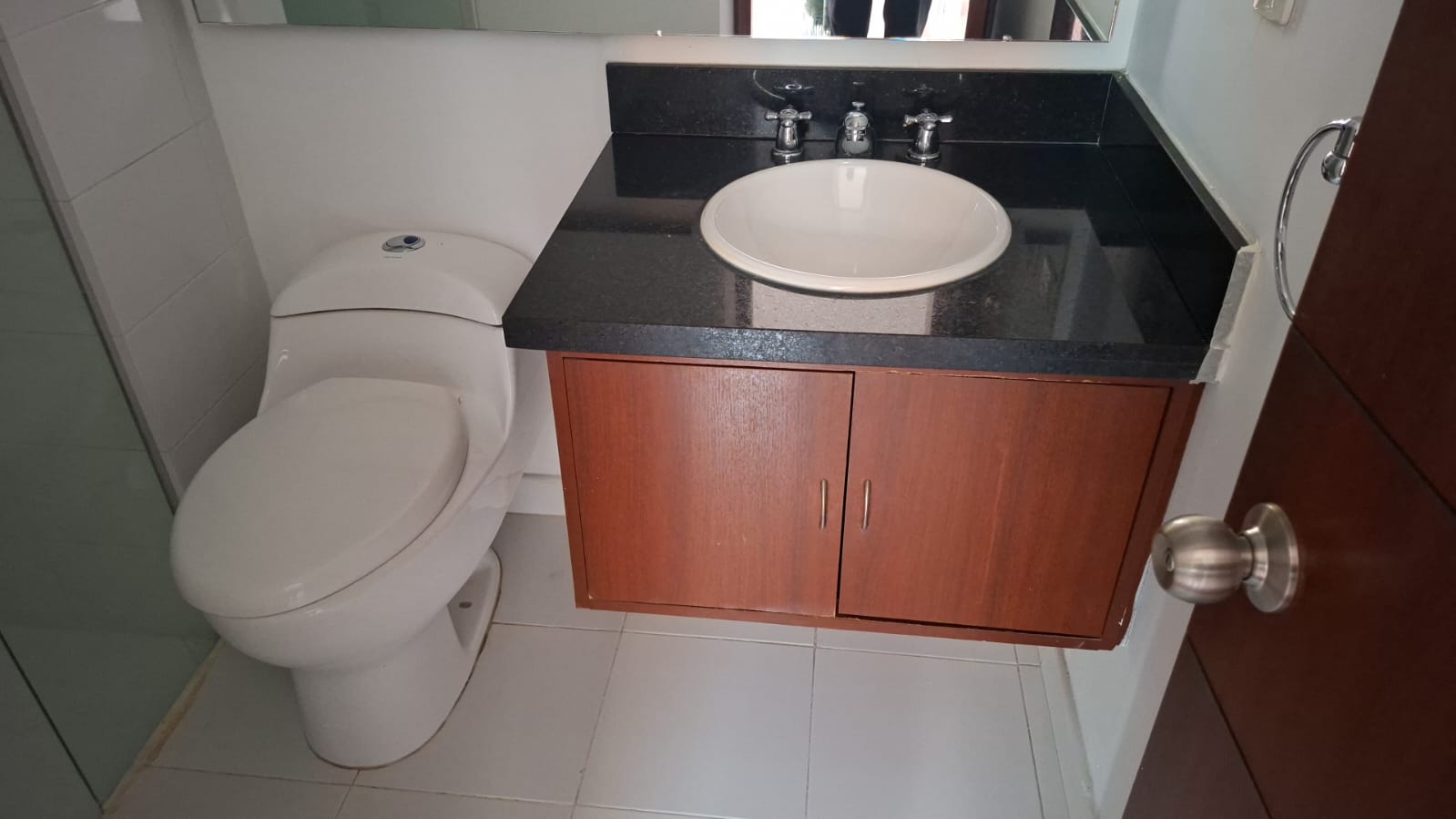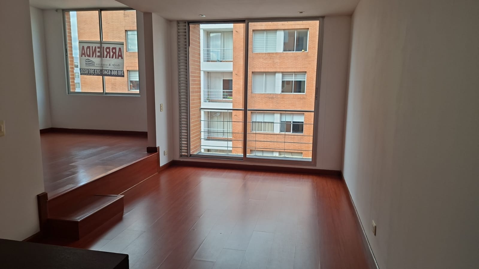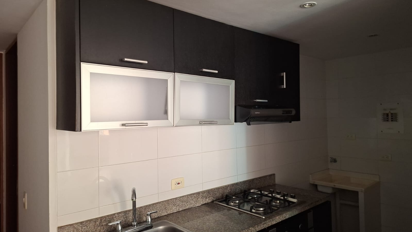 Apartamento exterior, sala comedor con balcón, cocina integral abierta, zona de ropas, una alcoba con baño privado y vista a la sala, baño social, un garaje y deposito.