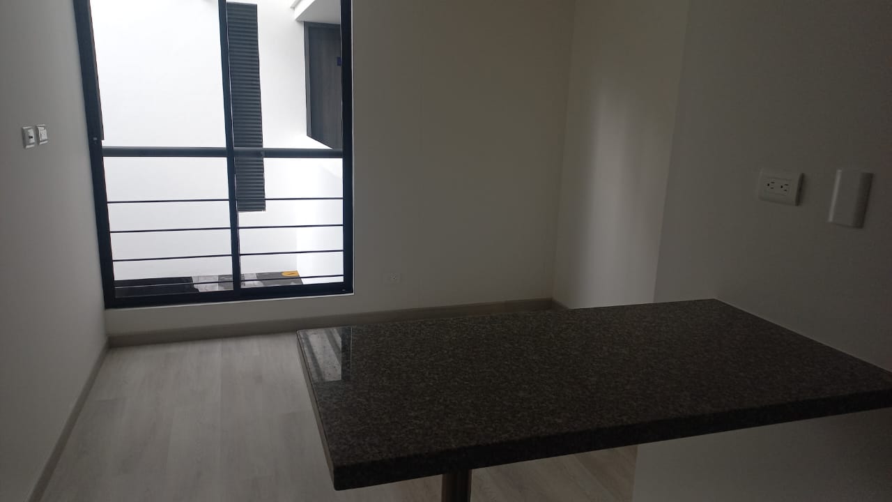 Sala comedor, cocina integral abierta, zona de ropas independiente, una alcoba, un baño, un deposito, sin garaje.